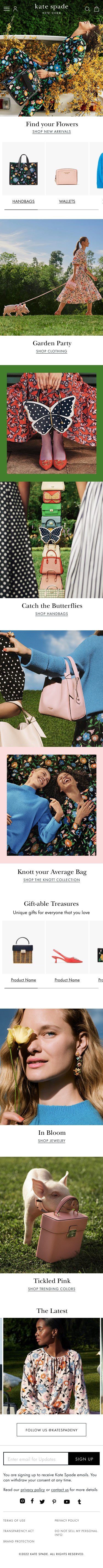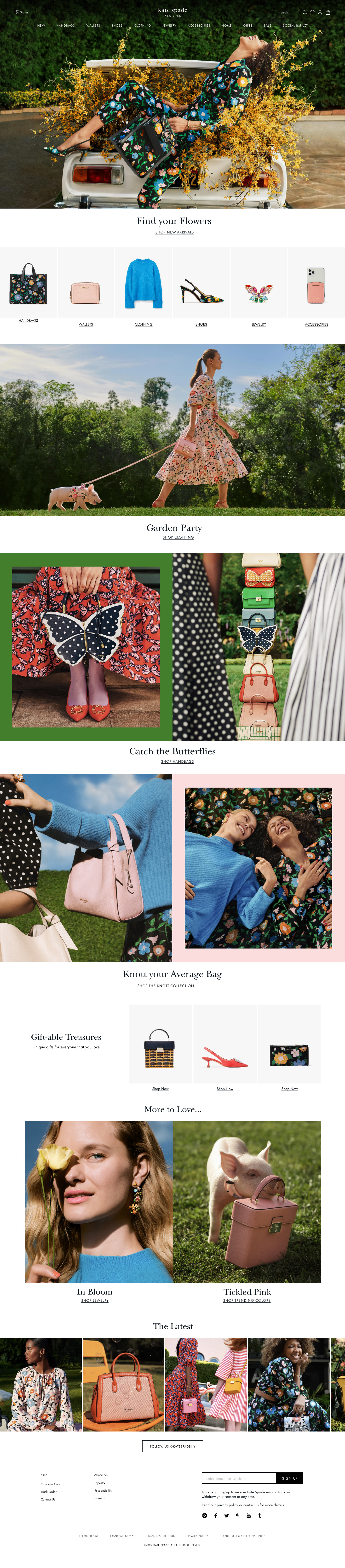 In 2022, Kate Spade New York underwent a major brand redesign led by Sylvain. Following the rebrand, the Kate Spade creative team partnered with the digital teams at Tapestry to re-platform and redesign the website to reflect the new visual identity. The project focused not only on translating the refreshed brand system into digital, but also on evolving the user experience—introducing a more intuitive interface, a scalable digital asset library, and a modular CMS framework to streamline content creation. The following pages illustrate the end-to-end customer journey, from marketing email and homepage entry points through product discovery and checkout.